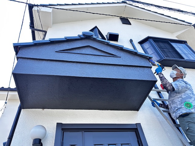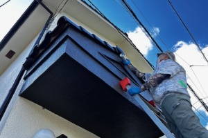 コウモリは通常全周への対策が基本ですが、今回はご予算の事情により、部分的な実施となりました。