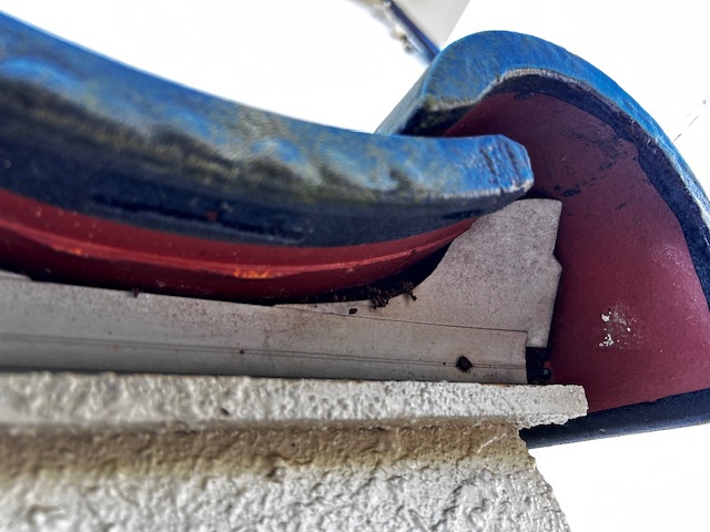 糞と幼獣が落ちてきた玄関上部の屋根には袖瓦に隙間があり、そこが主な営巣箇所になっていました↓