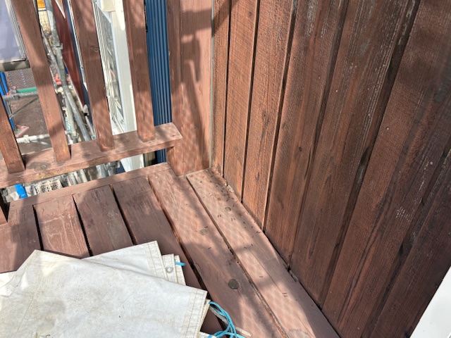 ちょうど音がする部屋の外のベランダに出ると、確かにコウモリの黒い糞が確認できます↓